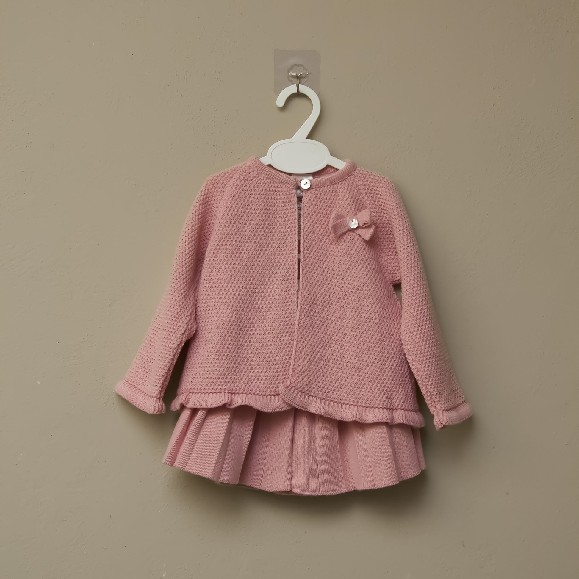 Conjunto con falda y saco con un botón y detalle de lazo