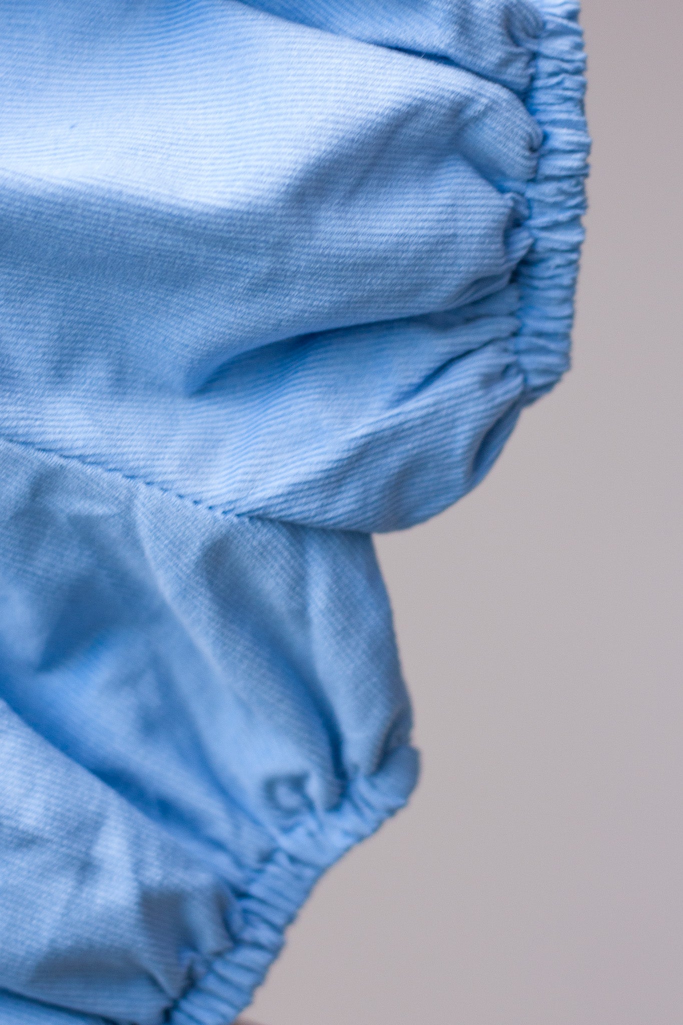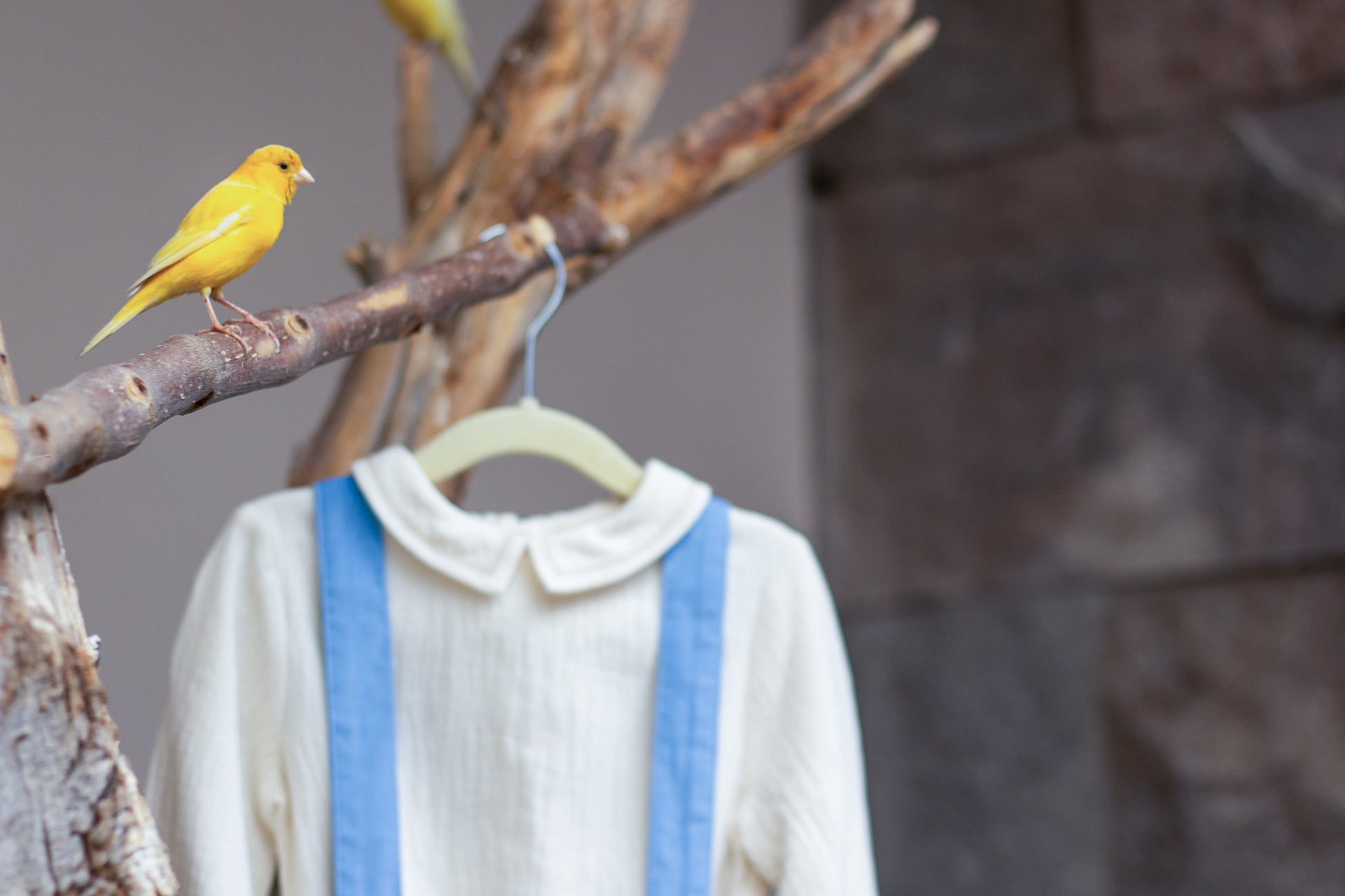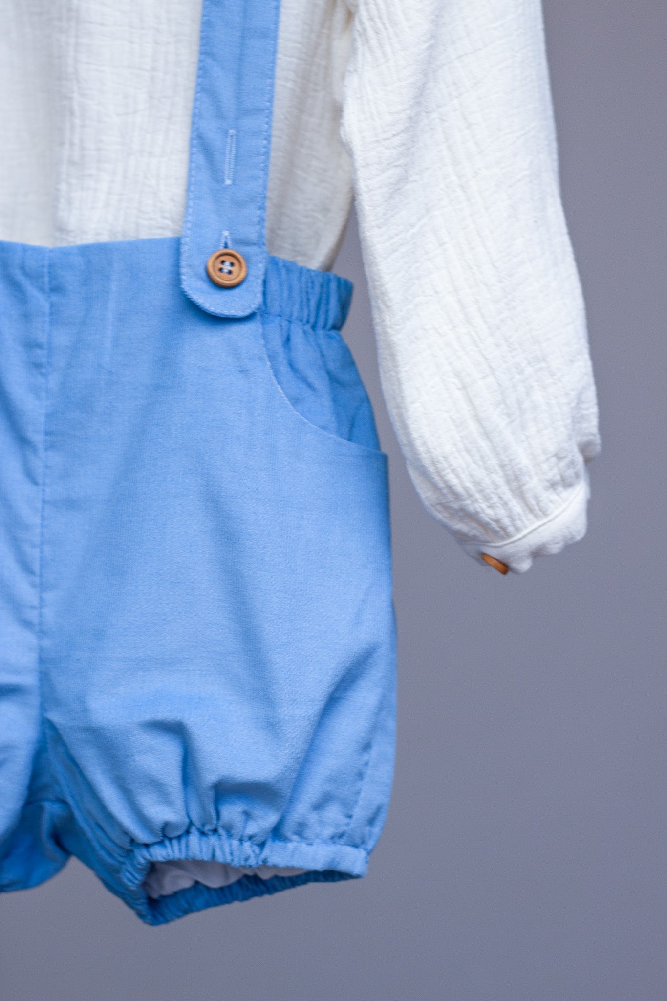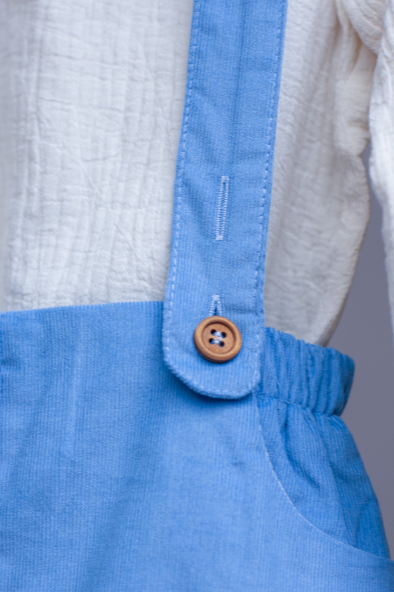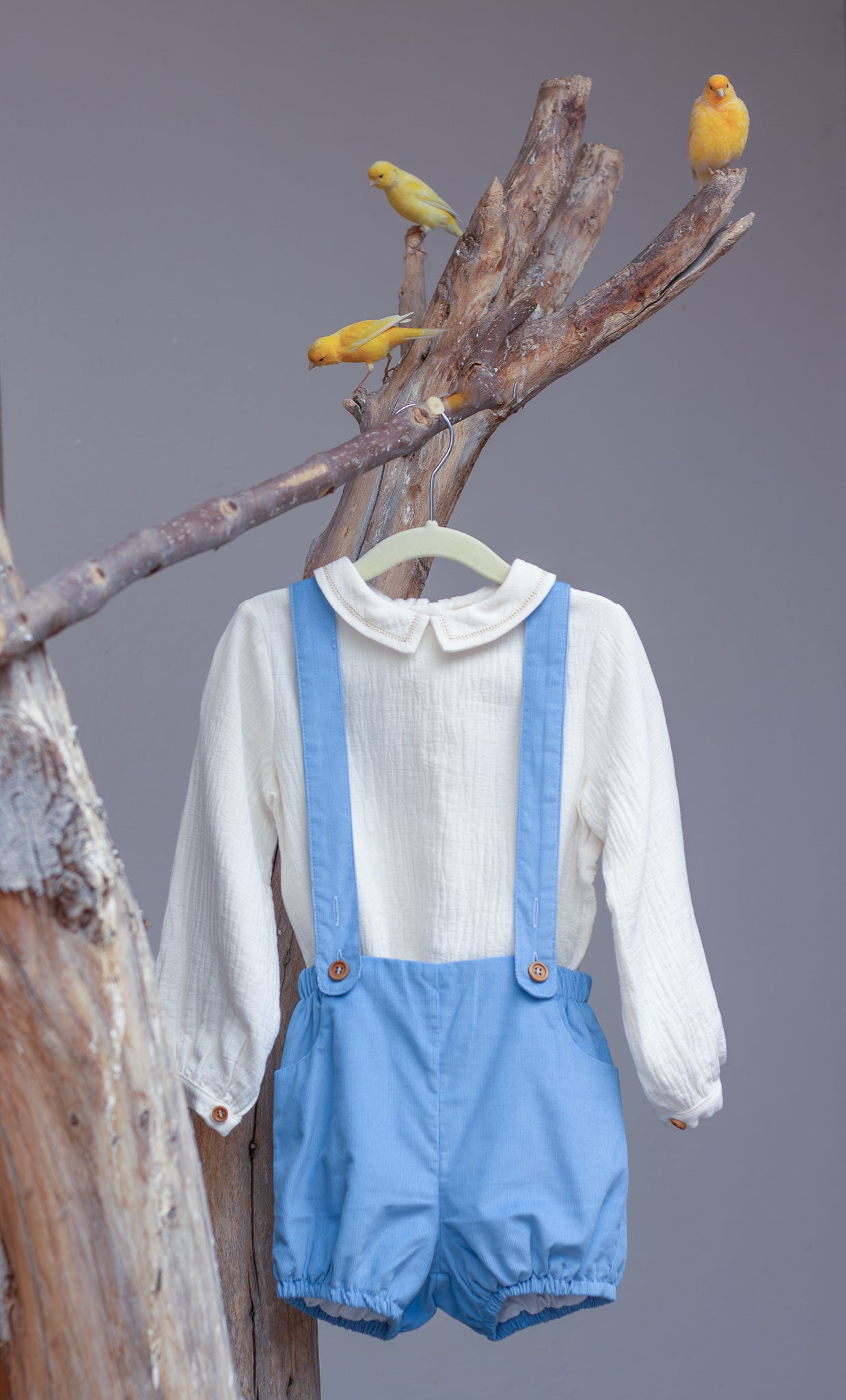 Conjunto de dos piezas con peto en pana y camisa manga larga crudo