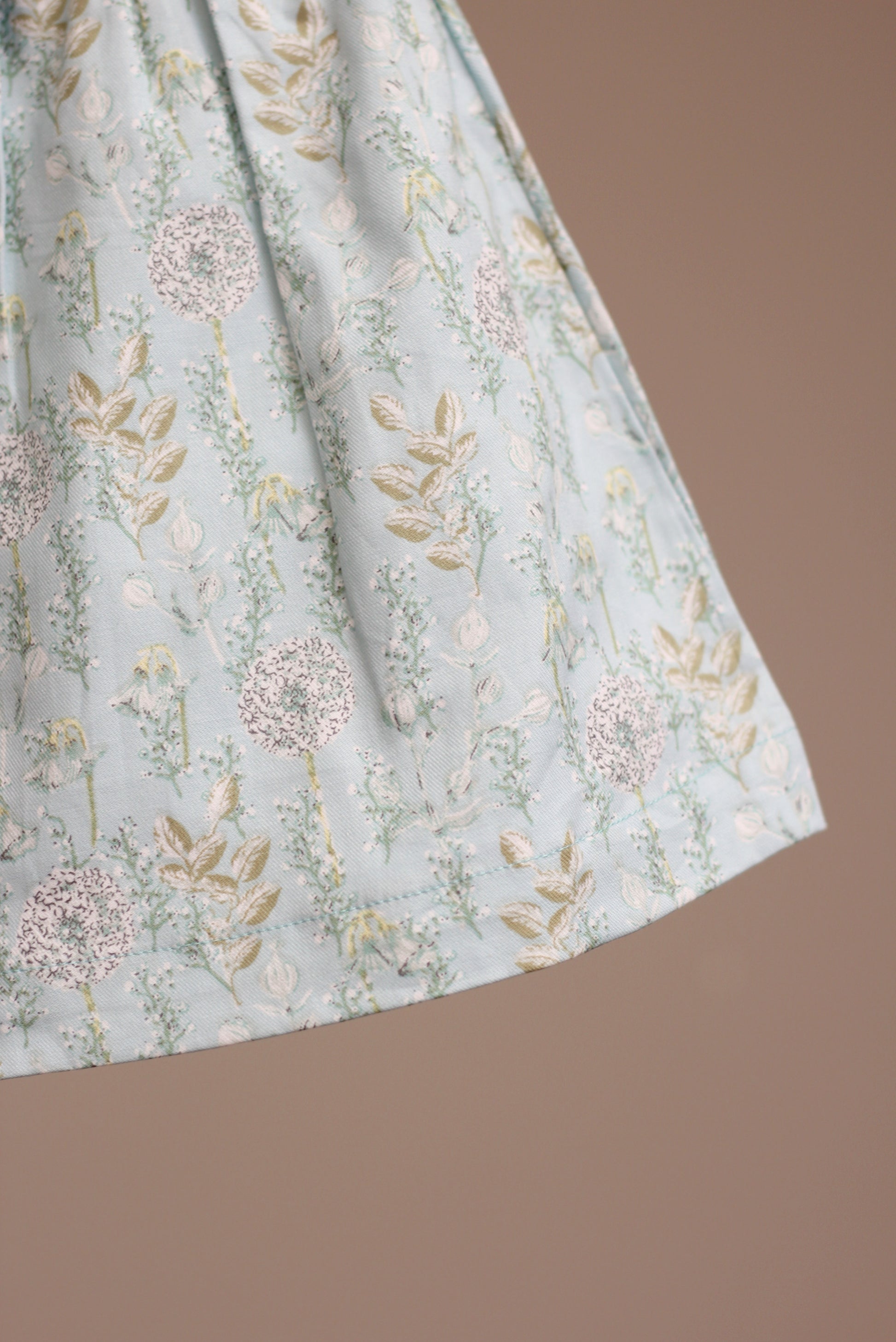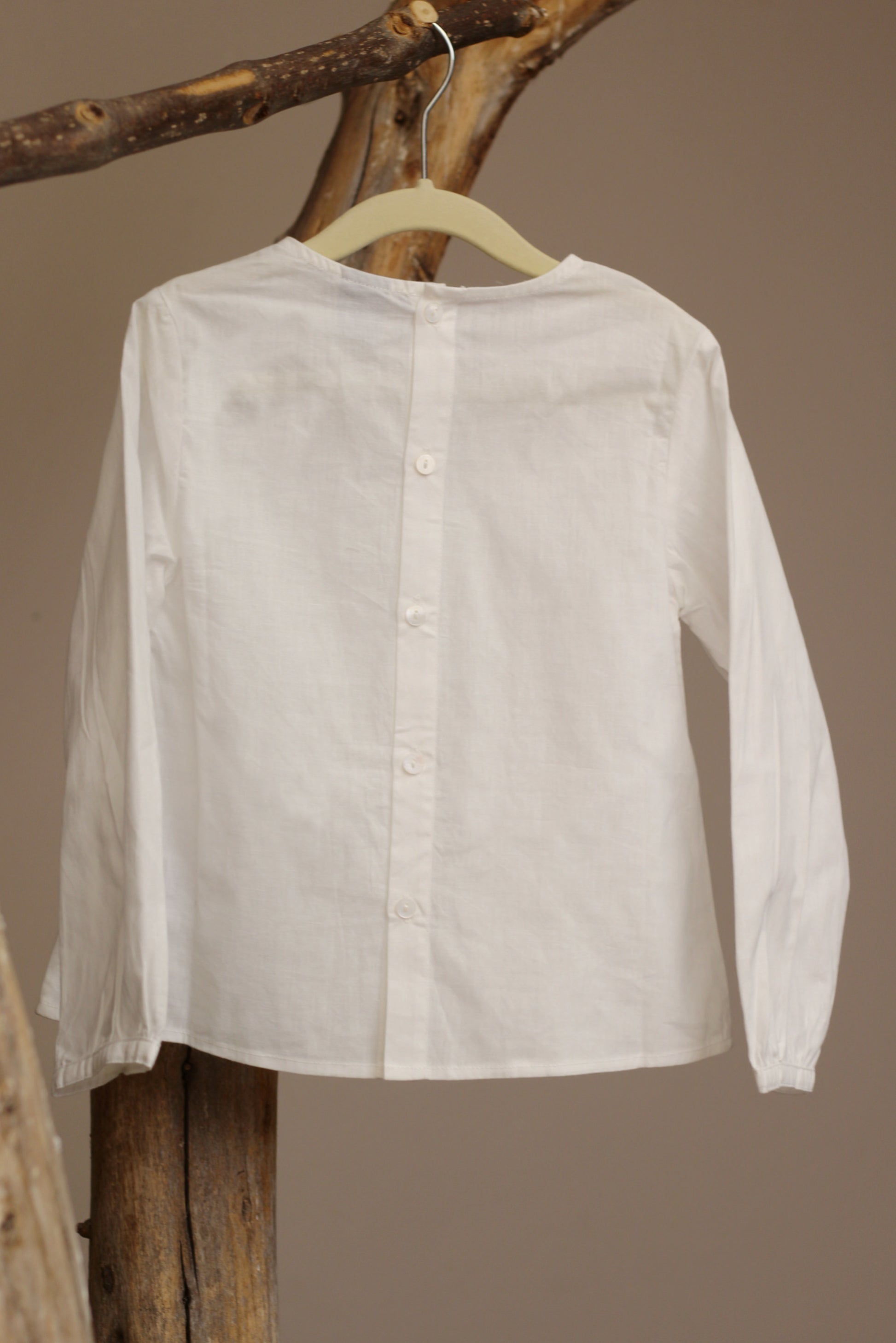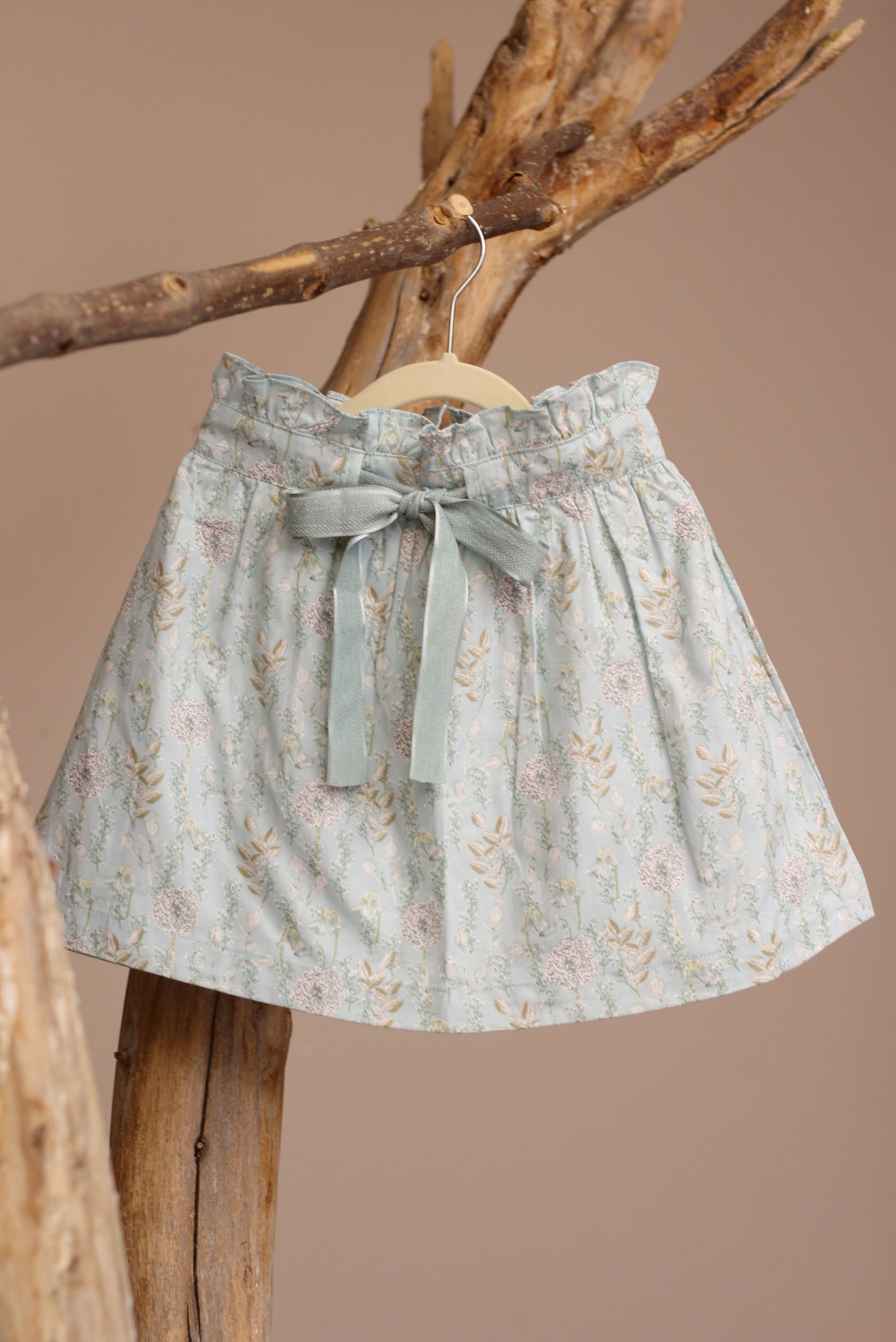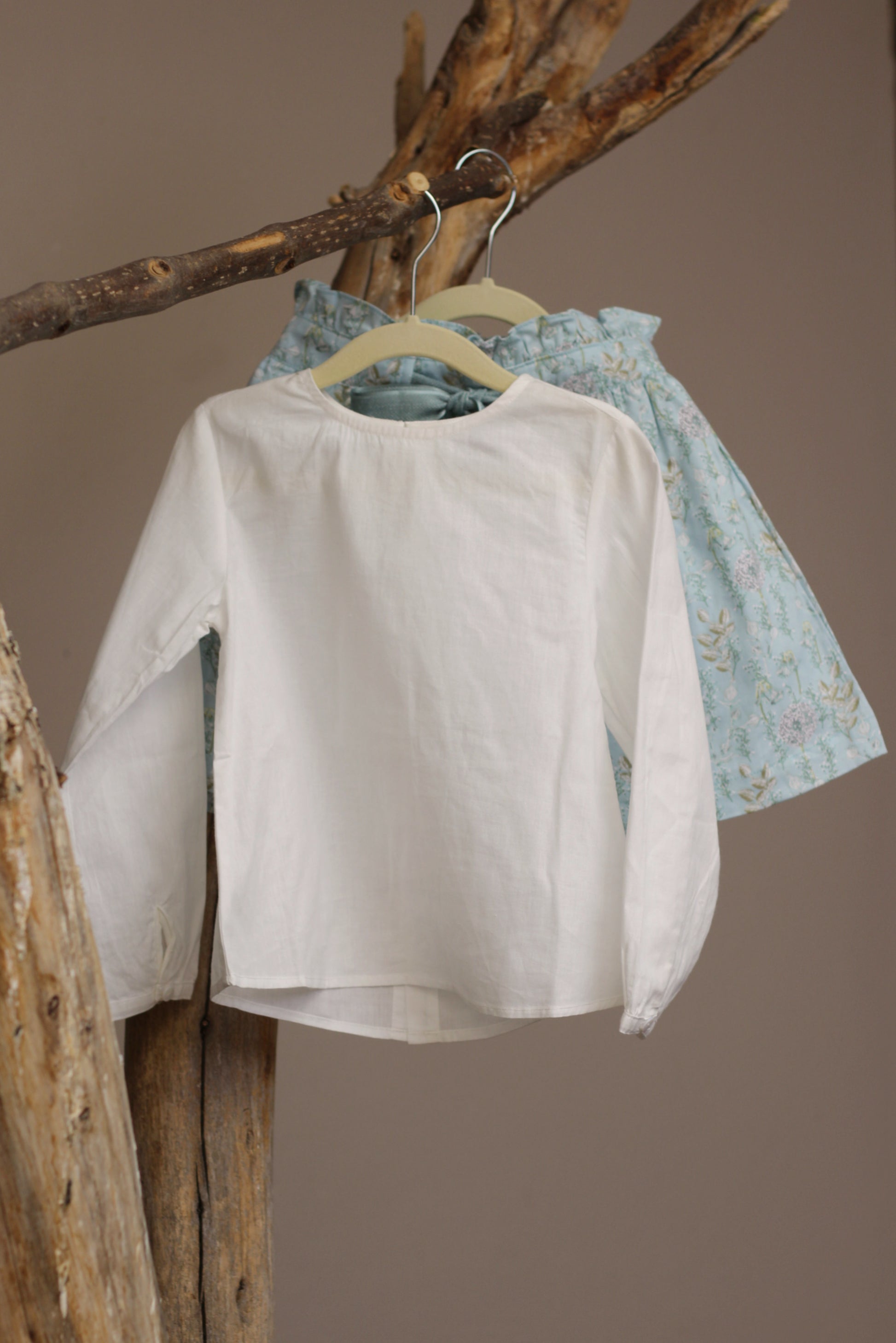 Conjunto compuesto de camisa blanca de algodón con falda de estampado floreado.