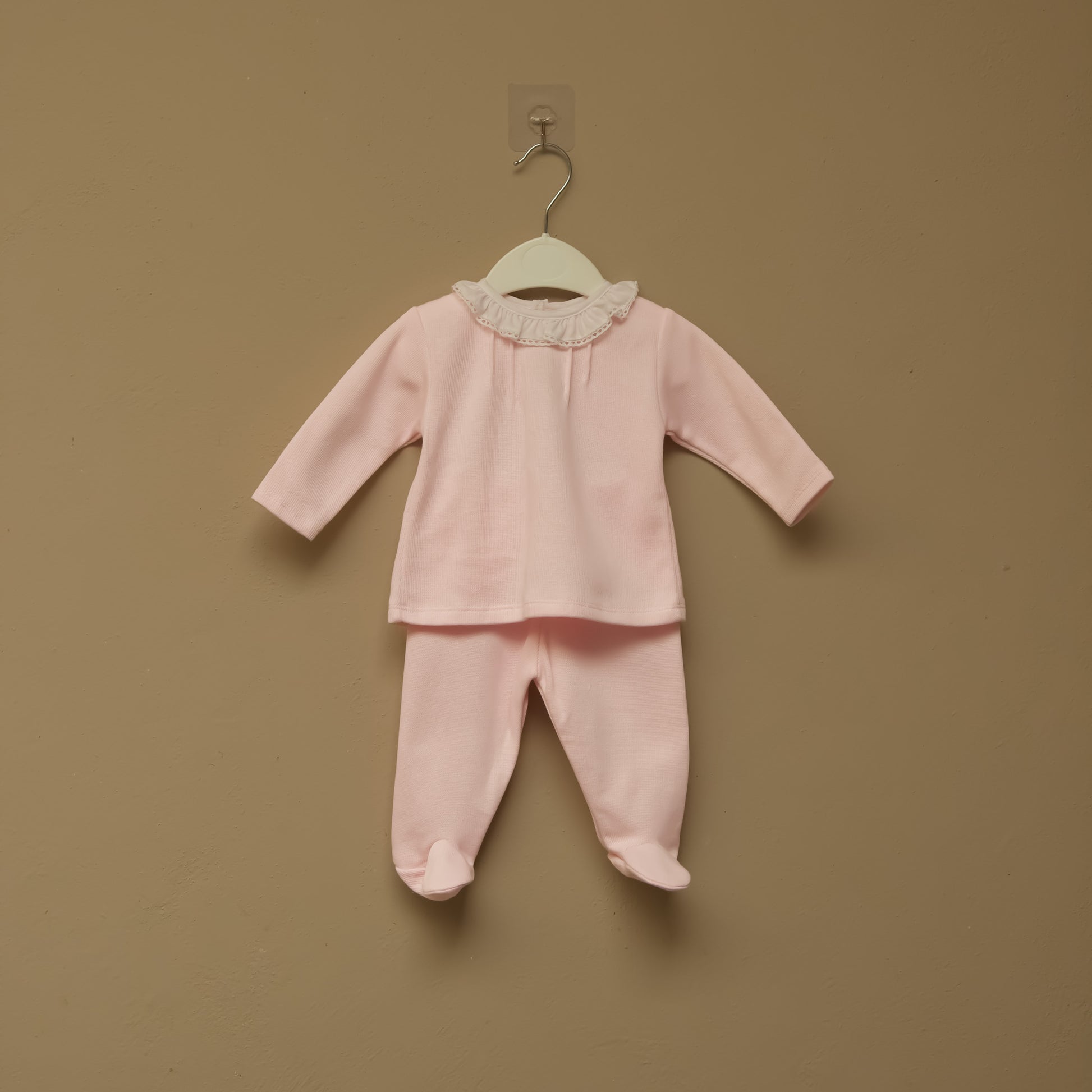 Conjunto de dos piezas con patucos y detalle en cuello con volante
